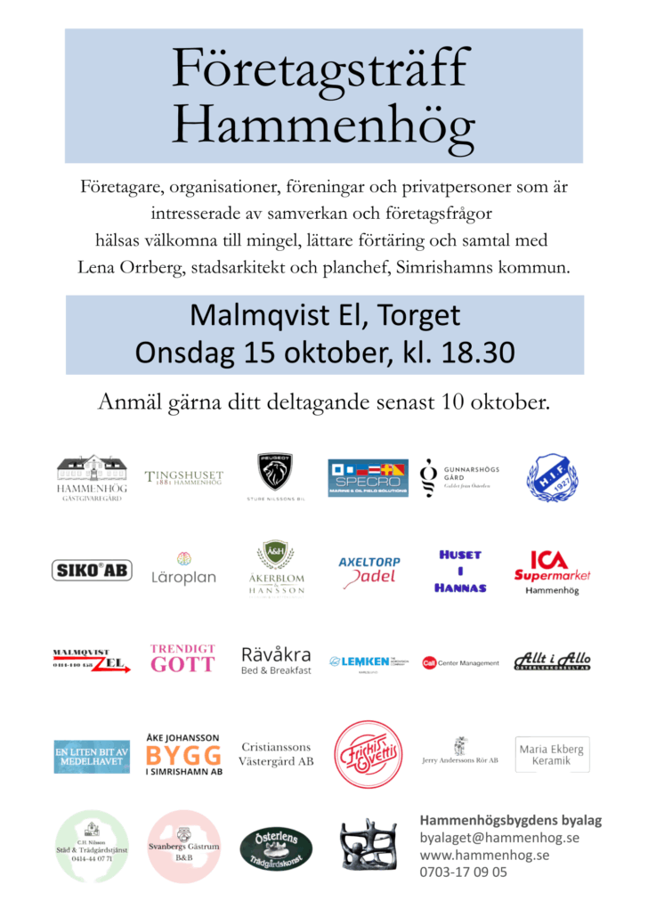Om möjligt anmäl gärna ditt deltagande senast 10 okt